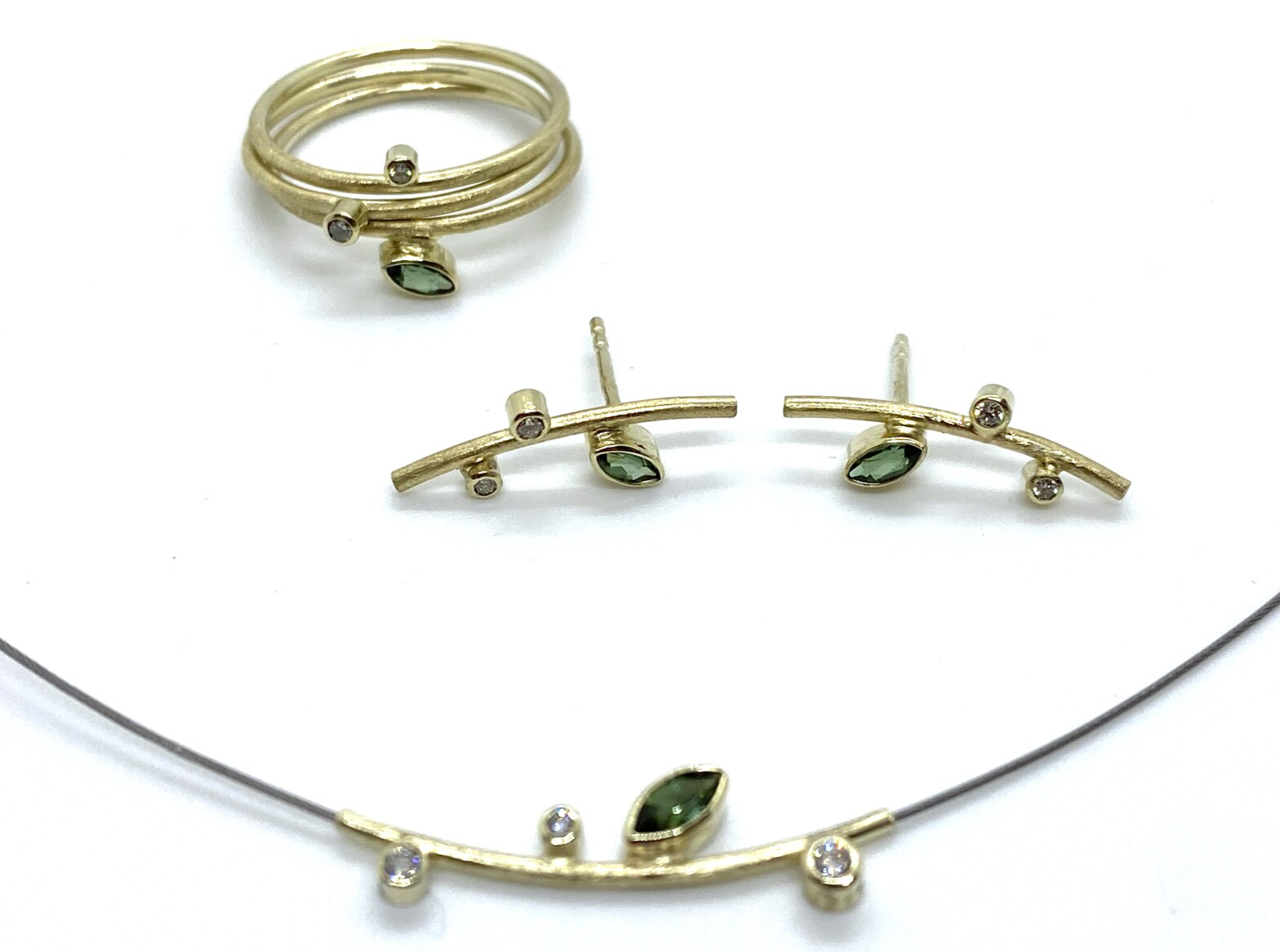 Set in geelgoud met groene tourmalijn en briljant - UITVERKOCHT -